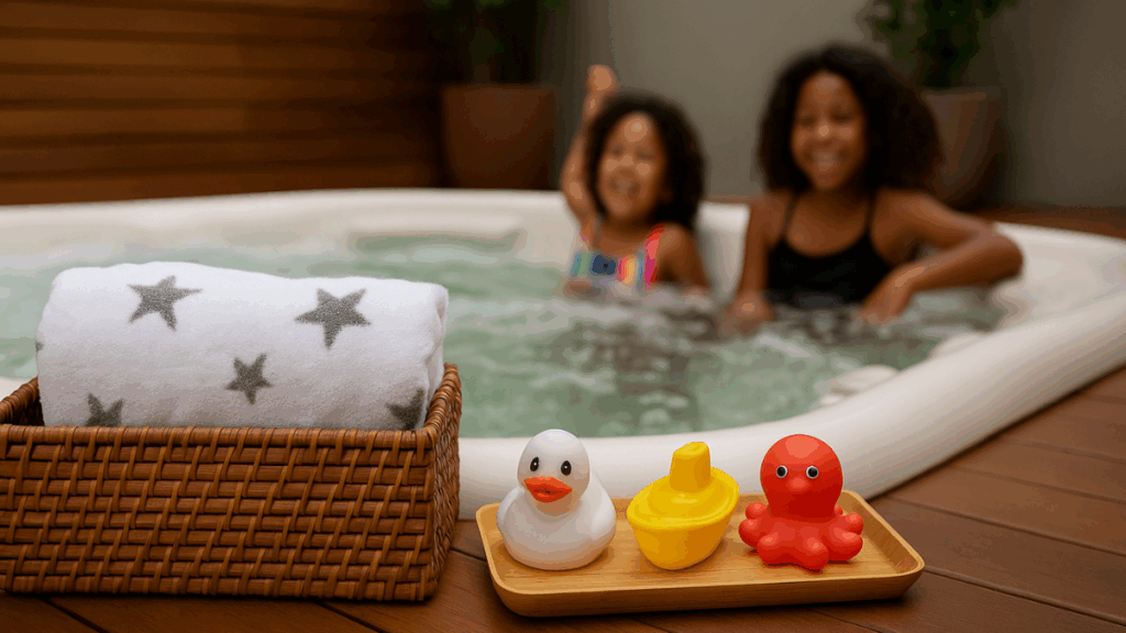 A água aquecida ajuda o corpo da criança a relaxar, o que é especialmente útil após dias agitados. Um banho rápido no spa à noite pode melhorar a qualidade do sono e ajudar no processo de descanso profundo.